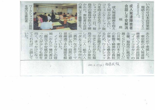 【震災・災害についての注意点】 http://iitoko-sagashi.blogspot.com/2011/04/blog-post_1521.html 申し込み前に読んでおいて下さい(申し込み方法がわからない方もお読み下さい) http://iitoko-sagashi.blogspot.com/2011/04/blog-post_6856.html ※ ディスレクシアの皆様はこちらをお読み下さい。 http://iitoko-sagashi.blogspot.com/2010/08/blog-post.html 発達障害当事者(アスペルガー、ADHD、高機能広汎性等自閉症スペクトラム)にとって、居心地のよい「オアシス」となることを夢見て立ち上げました… 名称:47都道府県交流