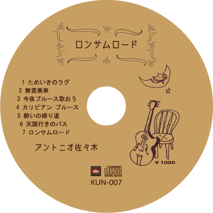 皆様お世話になっております もうお耳に入っているとは思いますが、お知らせでございます。 モアリズムのキラーギターで日本の至宝。 アントニオ佐々木がいよいよ動き出しました。。 人生初のソロアルバム『ロンサムロード』発売中です♪♪♪ アントニオ佐々木 『ロンサムロード』 全7曲 ¥1000(税込) {UN-007} 1、ためいきのラグ 2、無賃乗車 3、今夜ブルース歌おう 4、カリビアンブルース 5、酔いの帰り道 6、天国行きのバス 7、ロンサムロード 歌とギター:アントニオ佐々木 ご注文は⇒ http://www.morerhythm.