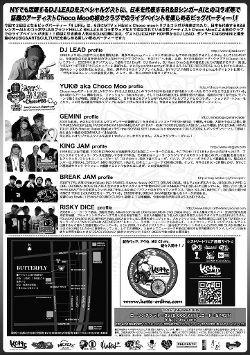 NY¤Ç¤â³èÌö¤¹¤ëDJ LEAD¤ò¥¹¥Ú¥·¥ã¥ë¥²¥¹¥È¤Ë¡¢ÆüËܤòÂåɽ¤¹¤ëR&B¥·¥ó¥¬¡¼AI¤È¤Î¥³¥é¥ÜÅù¤ÇÏÃÂê¤Î¥¢¡¼¥Æ¥£¥¹¥ÈChoco Moo¤Î½é¤Î¥¯¥é¥Ö¤Ç¤Î¥é¥¤¥Ö¥Ú¥¤¥ó¥È¤ò³Ú¤·¤á¤ë¥Ó¥Ã¥°¥Ñ¡¼¥Æ¥£¡¼¡ª¡ª