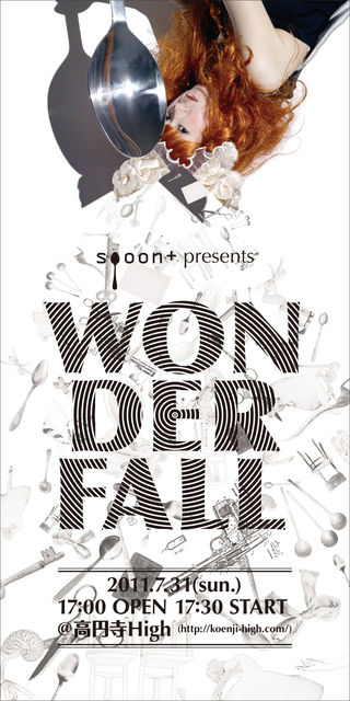 管理人様 宣伝失礼いたします。 spoon+ presents 「WONDER FALL」 at 高円寺High http://koenji-high.com/ open/17:00 start/17:30 adv/2000yen door/2500yen -Live- applehead マキ凛花 林家二楽 MISSILECHEWBACCA spoon+ -DJ- Codi(AngNing) -特典- ?来場者全員にspoon+1stALBUM「birth」発売を記念して「birth」ポスターをプレゼント! ?spoon+のメールアドレス(info@spoon-web.net)からチケット予約をしてくださった方には  予約先着50名様に、spoon+未発表曲「つぼみちゃん」を収録