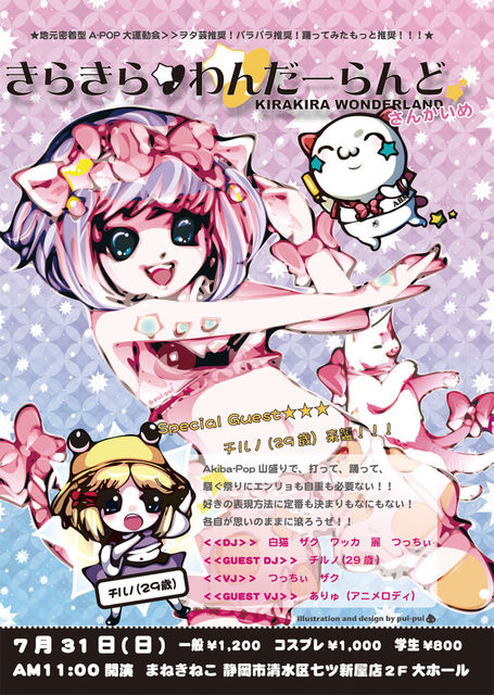 三回目のきらわんまであと2ヶ月を切りました!ってことで次回の予告をUPです!! どうでしょう?遊びに来ませんか?あなたの情熱を見せてくださいませ。 今回は当日募集はせずイベント1週間前までで本トピックでリクエスト曲を募集します。 【リクエスト】XXXX みたいな形で表明していただければOKとします。 ここmixiコミュだけの特典ですよ〜〜! 〜〜〜〜〜〜〜〜〜〜〜〜〜〜〜〜〜〜〜〜〜〜〜〜〜 地元密着型を夢見て始まったきらきら☆わんだーらんど、早くも次回の予告です! 前代未聞の一曲丸ごと走り打ち、通称「死霊の盆踊