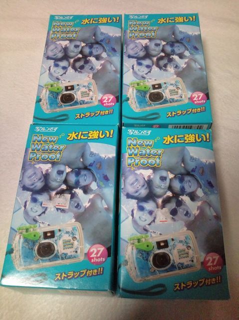 昨年末に4台募集しましたが世はデジカメ時代なのか2台余りました。 画像には4台写っていますが2台の募集です。 富士フィルム 写ルンです New Water Proof 27枚撮り 10メートル防水 (有効期限2010年4月で期限切れ) 2台あります(定価1800円/台の物です)。 ☆ご応募について☆ ご応募はコメントのみでお願いします。 ご希望の個数も書いてくださいね。 ☆発送について☆ 商品は無償ですが発送費はご負担願います。 発送は少量は定形外での発送いたします。 複数の発送は定形外もしくは