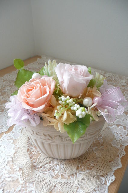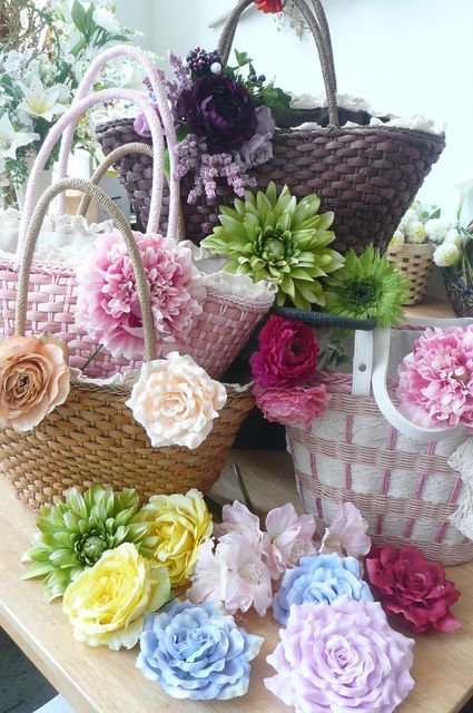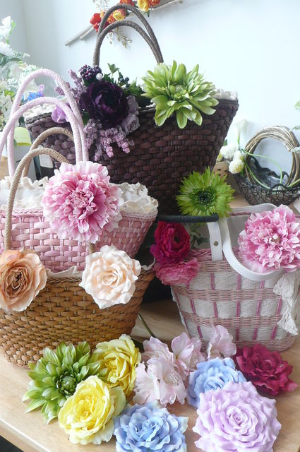 こんにちは 神戸の阪急御影で プリザーブドフラワー&アートフラワーの店をしております メゾンドフルールです 今回は7月末まで 夏のアレンジの体験のご紹介です *サマーバックアレンジ 夏に大活躍のサマーバックに 好きなお花をアレンジしていただきます *チューテスタンドアレンジ 爽やかな色合いとキラキラストーンが可愛いアレンジ プレゼントにも出来ますし ラッピングメッセージカードもあります *パールブーケ こちらは小さい花束を1本ずつワイヤリングしてアレンジします オールラウン