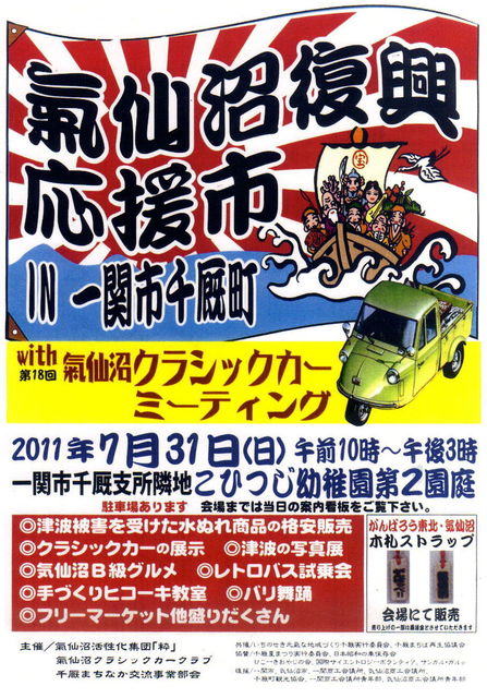 復興応援市あります バリ舞踊2ステージ、11時〜&13時〜やりますので、 ぜひお越しくださいね 演目:ガボール(歓迎の踊り)、オレッグ・タムリリンガン(蜜蜂の求愛の踊り)、ほか予定。 クラシックカーもたくさん集まります また、B級グルメや復興応援の木札携帯ストラップの販売もあります ご家族みんなで楽しめるお祭りです