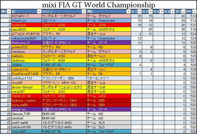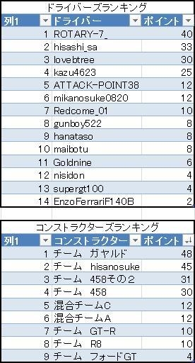 8月は久しぶりに21時までのシフトが増えた為シリーズ戦を復活させます!! イベントトピを見ると水曜日が空いているので毎週水曜日開催です☆ 第2戦では久しぶりのエントリーとなったkazuさんが変則的な2ストップ作戦を、さらに圧倒的な速さを見せつけ見事に勝利! チームhisanosukeのhisashiさんも2ストップを決めて2番手、1ストップをとった7君がPPハンデがあったもののきっちり3位に入りランキング首位を守りました!! 今回のマシンレギュレーションはFIAGT(に出てきそう?w)!! RMできるモデルとできないモデルがあるため