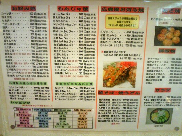 こんちゃ! レツパの鈴木くにおデス。 さぁ!ラス前だ!第34発目のPartyのご案内だョ! いきなりですが、みなさん! 水に溶いた小麦粉を生地として、肉や魚介類および野菜などを具材とし、 鉄板の上で焼き上げ、調味をつけて食するもの。って何ですか? チッ‥チッ‥チッ‥チッ‥チーン♪ そうだね!お好み焼きだね! はい、今回はお好み焼き、もんじゃ焼、鉄板焼き、ついでにタコ焼きも♪ ぜーーーーんっぶ食べ放題の鉄板焼きPartyだ! おっと、もちろん鉄板焼きだけじゃなくサラダや揚げ物等の一品料理も食べ放