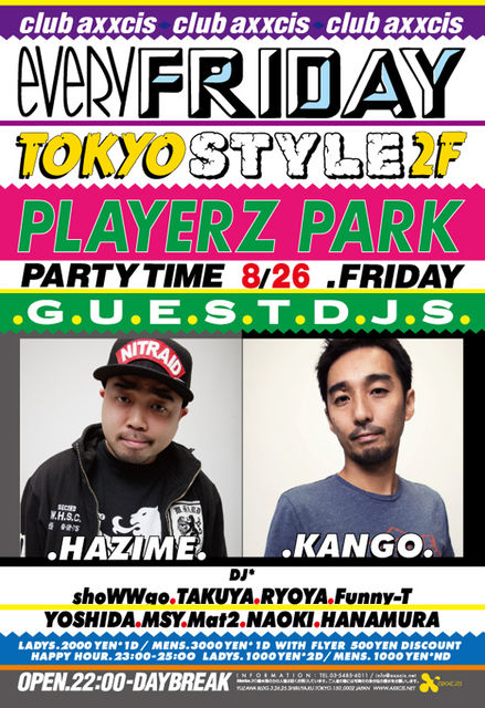 管理人様告知失礼致します 8月19日(金曜日)@axxcis TOKYO STYLE 〜Catchy R&B PARTY〜 毎月満員御礼のBIG イベントCatchy Box GUEST DJにはDJ KEN-BO/MOTOYOSI/HIROKI /WATAYOSHIと超豪華 盛り上がること間違いない1000人規模のBigイベントになっております 今回なんと、 男女共1000円で飲み放題(浴衣着用)です そして、 1時まで、 なんと