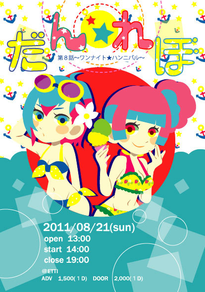 今年も来たぜ!!だん☆れぼの夏!!!大人のみんなでビール飲もうず! 少年少女はスク水か浴衣でおいでよ^^ハァハァ ☆☆開催決定☆☆ 静岡のオタクカルチャーを大いに盛り上げていこう!! メイド・イン・静岡のアニソンクラブDJイベント!!! 『だん☆れぼ』 第八話 〜ワンナイト★ハンニバル〜 ■日時 2011/8/21(日曜日) ■open 13:00 ■start 14:00 ■close 19:00 ■場所 ETTI(ドンキホーテ6F)     静岡県静岡市葵区紺屋町12-1     054-254-7316 (周辺地図)