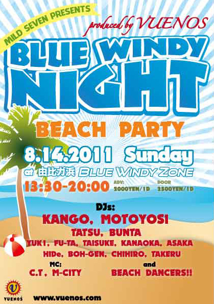 VUENOS PRODUCEでお届けするBEACH PARTY『BLUE WINDY NIGHT』!!