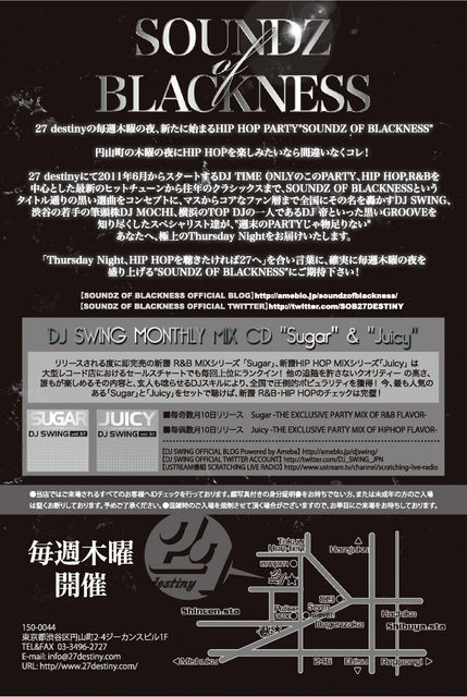 8/4(木)"SOUNDZ OF BLACKNESS" @ 27 destiny