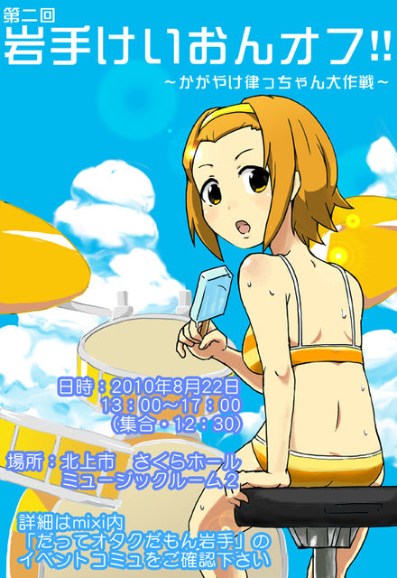 せつそんと申します。 祝☆けいおん!第二期絶賛放送中!w ということでけいおん!!放送中に間に合いそうにないですが、またけいおんオフやるよ〜!w けいおんを見て思わずドラムを買っちゃった人もいるのではないでしょうか?w でも買ったは良いけどどうすれば… なら、けいおんセッションオフで叩いちゃえばいいじゃない!!! 要綱: けいおん曲やアニソンなどののセッションオフ会になります。 みんなでスタジオに入って演奏してみよう!という企画です。 初心者の方も腕に覚えのある方も