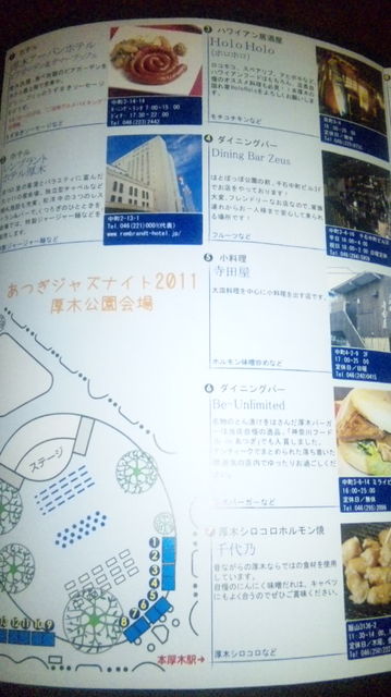 来たる25日、26日15時30分〜21時 厚木公園(はとぽっぽ公園)で 『厚木 JAZZ NIGHT 2011』 が開催されます (雨天時中止) ゆったり生JAZZ演奏を聞きながら色々な食事を楽しむ大人の空間に。。。 僕達、ワイワイ系HOLO HOLOも出店が決定しました 今回初の出店でドキドキ、ワクワクですが 楽しくJAZZを聞きながら頑張りますのでお時間ありましたら 是非、この洒落たイベントにいらしてくださいね そして気になるMenu FOOD