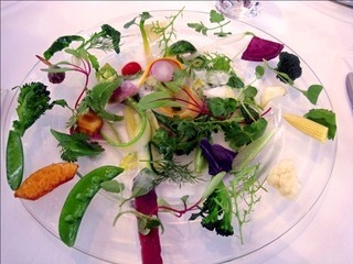 [管理人さん承諾イベント] 当コミュでは、久々のオフ会開催。 今回は、タテルヨシノ銀座店を選びました。 ご存知、吉野 建シェフのお店。 パリのお店でもミシュラン☆を獲得しており、東京とパリを行ったり来たりの 生活だそうです。なんとも素敵で羨ましいですね。 お店は天井の高い素敵な空間となっており、雰囲気は言うことなし。 料理が美味しいのはもちろんですが、プレートはまるで絵画のような色彩を 醸し出しており、これ自体がアートになっています。 こんな素敵な空間の中で旅と食の話でもしながら、 いい週末をご一緒し