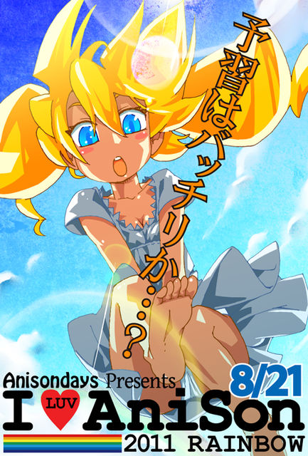 今夏、偵都横浜で活動していたアニデイが初の学外イベントを開催します! 夏の一大イベント『Animelo Summer Live』を堂々リスペクト。 アニサマ好きのアニサマ好きによるアニサマ好きのためのイベント その名も…      「I ♥ AniSon 〜2011 rainbow〜」 (略称: らぶあに!) 【日時】 2011年8月21日(日) 14時〜20時  ※本番の1週間前デス! 【会場】 Studio Cube 326 4F TIARA @田町 公式サイト:http://www.studiocube326.com/ 【参加費】 ¥2,000 (+1drink ¥500) ※らぶあに!コミュで参加表明