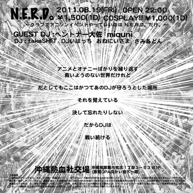SHINKICHI and MONDO agreed the possibility of DUBSTEP and created the party ¡Èbud¡É, where it is started at OTOBOLA, which is now hitting 1st anniversary in coming August, 2011.In the Koza¡Çs night, playing sounding base music, the two super strong DJs, whose names are NU-DOH and IORI, newly joined.The party moved the basic venue to Naha and being held monthly. This is possible because of everyone¡Çs support. Thank all of you so much sincerely. It is now the drastic era of unkn