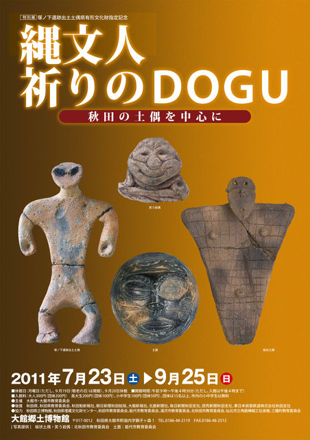 大館郷土博物館では、塚ノ下遺跡の土偶が県指定文化財になったことを記念して「縄文人 祈りのDOGU−秋田の土偶を中心に−」の特別展を開催しています。 この特別展は、一昨年イギリスの大英博物館に出展した塚ノ下遺跡の土偶を紹介するほか、北秋田市板状土偶と笑う岩偶・能代市の土面の複製品などを展示しています。 また、戦後に大館市内で発見され、現在は秋田県立博物館に所蔵されている考古資料なども展示しています。通常は見学できない資料ですので、この機会にぜひご覧ください。 ▽期間 7月23日(土)〜9月2