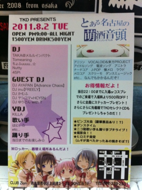 管理人様告知失礼させて頂きます。。。 TKダンサーズPresents 名古屋最狂のアニソン&ロックイベント!!!! 『とある名古屋の萌酒音頭』 アニメとROCKがだいすきなTKダンサーズがただただ、コスプレしてお酒飲んで、すきな曲をかけて歌って踊れる楽しいイベントが名古屋にもあったらいいのにな! そんな思いでできたイベントが!!!! ついに8/2日開催されるでゲソ〜! お酒を飲んで、歌って踊って遊ぼうじゃなイカー?! ⊂二( 内・ω・容)二⊃ アニメソング、VOCALOID&東方PROJECT、アイドルソング、電波ソング、アニトラ、ナ