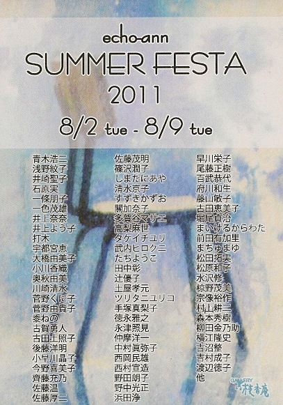 SUMMER FESTA 2011 8/2tue 〜 8/9tue 11:00〜19:00(日曜、最終日、17:00まで) ギャラリー枝香庵 http://echo-ann.jp