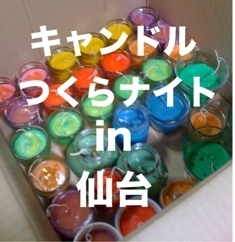 ※管理人さま、スペースお借りします 落語家 古今亭駿菊師匠が中心となって 日本各地で開催中の「キャンドルつくらナイト」がいよいよ仙台に上陸です。 内容は手作りの虫除けアロマキャンドル作りです。 このイベントで作ったアロマキャンドルは 避難所や仮設住宅にお住まいのみなさんに 届けられます また、駿菊師匠の落語も聞けます。 キャンドルを通して多くの日本人が繋がっているんだと言う事を再確認し、 より理解と繋がりを深めようと考えております。 先日、東京で開催されたイベントで作られたキャンド
