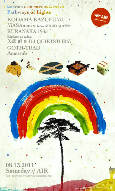 2011.8.5 (FRI) ZETTAI-MU MONTHLY GROUNDATION in KYOTO "Word Sound and Power" ::Cast:: REBEL FAMILIA GOTH-TRAD (DEEP MEDi / BACK to CHILL) KURANAKA 1945 (Zettai-Mu) KIHIRA NAOKI (S.I) VISUAL&LIGHTING : ekran + friends 710.beppo(Vokoi+FURUDATE Ken) + TSUJIO Mayumi + Kezzardrix SHOP: AURA / DUMBO @ 世界WORLD Info tel: 075 213 4119(WORLD) ADDRESS: 京都市下京区西木屋町四条上ル真町97 イマージアムBF〜2F WEB SITE : http://www.world-kyoto.com/ http://www.zettai-mu.net/news/1108