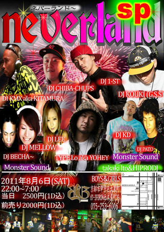 本日BGにて激熱イベント!! 明日SPを控えたネバーランドの前夜祭!! このに遊びにこれば間違いなす!! 全員おしゃれーです(^O^)/ おシャレーに子供に戻りましょう\(゜ロ\)(/ロ゜)/ DOOR 男性2000(1D) 女性1000(1D) DJ's KMX K4 CHIBA-CHUPS