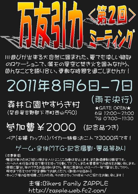 ´ÉÍý¿ÍÍ͵®½Å¤Ê¥¹¥Ú¡¼¥¹¤ª¼Ú¤ê¤·¤Þ¤¹¡£ ¥³¥ß¥å¤ËÉÔŬÀڤʤéºï½ü¤ª´ê¤¤¤·¤Þ¤¹¡£ ÀîÍ·¤Ó¤Î½ÐÍè¤ëÂ缫Á³¤Ë°Ï¤Þ¤ì¤¿¡¢²Æ¤Ç¤âÎä·¤¤Àä¹¥¤Î¥í¥±¡¼¥·¥ç¥ó¤ÇËþÅ·¤ÎÀ±¶õ¤Èʲ¤²Ð¤ò°Ï¤ß¤Ê¤¬¤é¡¢¿§¤ó¤Ê»ö¤ò¸ì¤ê¹ç¤¤ÁÇŨ¤Ê»þ´Ö¤ò²á¤´¤·¤Æ¤ß¤Þ¤»¤ó¤«¡ª ¢£¾ì½ê¢£ ¿¹ÎÓ¸ø±à¤ä¤¹¤é¤®Â¼ ÆàÎɸ©µÈÌî·´²¼»ÔÄ®À¾»³£µ£µ£° ¢££Ç£Á£Ô£Å¡¡£Ï£Ð£Å£Î £¶Æü¡§£±£²»þ¡Á£²£±»þ £·Æü¡§£·»þ¡Á£±£±»þȾ ¢£»²²ÃÈñ¢£ £²£°£°£°±ß¡ÊµÇ°ÉÊÉÕ¤¡Ë ¢¨É×ÉØor¥«¥Ã¥×¥ë¥Ð¥¤¥«¡¼¤Ï¤ªÆó¿Í¤Ç£³£°£°£°±ß¤Ç¤¹¡£ ¥²¡¼¥à¡¦Á´ÂÎMTG¡¦µÇ°»£±Æ¡¦·ÊÉʤʤɤ¢¤ê¡ª ¾ÜºÙ¤Ï