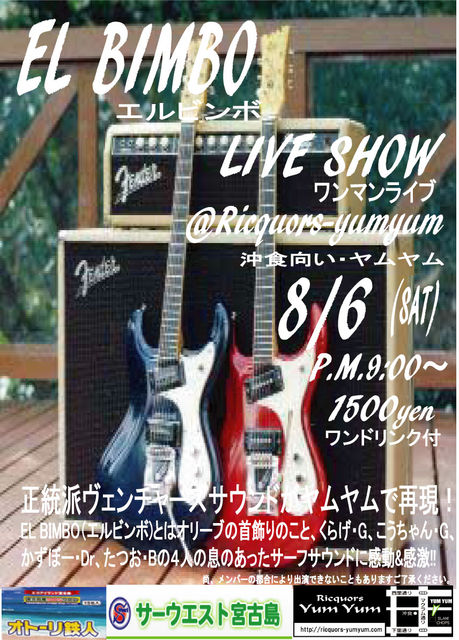 ¶ÛµÞ¥é¥¤¥Ö®Ê󡪡ª¡ª¡ª¥ô¥§¥ó¥Á¥ã¡¼¥º¥µ¥¦¥ó¥É¤ÇÏÃÂê¤ÎEL¡¦BIMBO¡Ê¥¨¥ëŽ¥¥Ó¥ó¥Ü¡Ë¤Î¥é¥¤¥Ö¤¬¤¢¤ë¤è¡ª¡ª¡ª£¸/£¶(SAT)P.M.9:00¡Á¡÷Ricquors-yumyum¤Ë¤Æ¡ª¡ª¡ª Ê¿¶ÑǯÎ𣵣°¥ª¡¼¥Ð¡¼¤Î¥µ¡¼¥Õ¥µ¥¦¥ó¥É¤Ë½¨¼ù´¶·ã¡ª¡ª¡ª¡ª