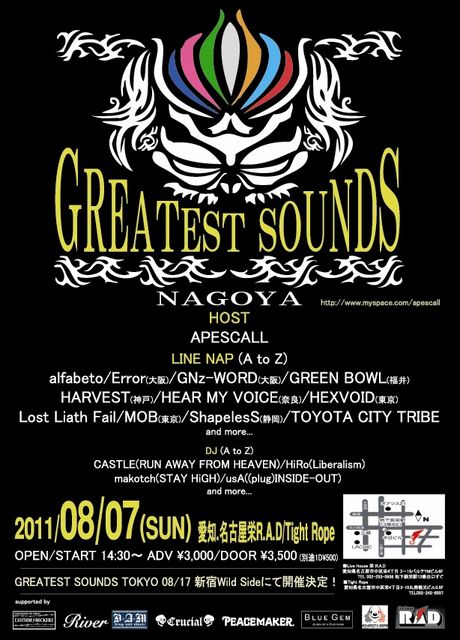 『APESCALL presents 『GREATEST SOUNDS NAGOYA』 supported by SAKAE R.A.D』