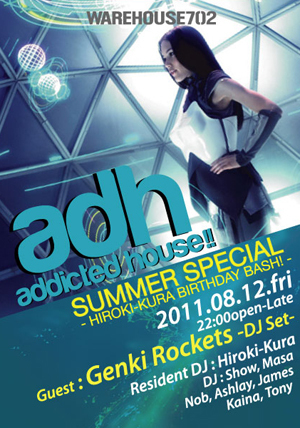 8/12(FRI)のWAREHOUSE702のaddictedhouseにてGENKI ROKETSさんが出演してくれます。