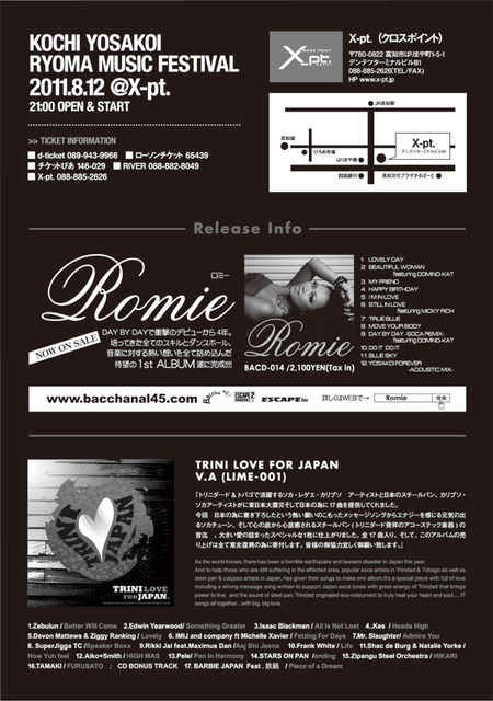 "いちむじん”、そして、東京からは大注目アーティスト"MICKY RICH ",そして高知が生んだ歌姫"Romie"の登場!スチールパンのライブや地元の人気BANDやアーティストが勢揃い!