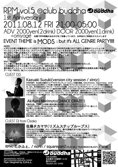 2011/08/12/FRI MUSIC 17:00~21:00 CLOSE 22:00