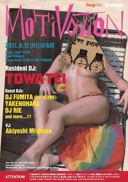 2011年も快調に疾走し続けるTOWA TEI主宰のロングラン・レギュラーパーティ“MOTIVATION”。今回、AIR初登場となるスペシャルなアーティストのブッキングが急遽決定した。DIPLO。M.I.AやBonde Do Roleなどのプロデューサーとして知られ、SWITCHとのユニットMAJOR LAZER名義でFUJI ROCK FESTIVAL '09に出演したレーベルMad Decentを主宰する現ダンスミュージックシーン最重要プロデュ