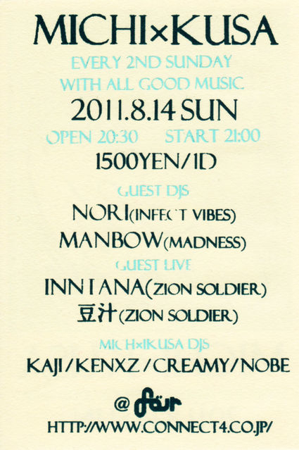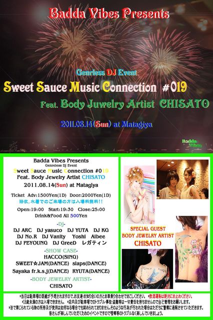 ☆日時(Day) :8月14日(日) AUG14 ☆Hours:16:00〜21:00