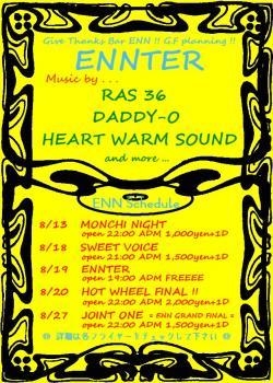 2011夏、雷警報発令しました!雷家族からこの3人が藤沢に登場。RINOはSpecial SetでLive予定とか?毎回、他のアーティスト達も遊びに来てくれるこのイベントはかなり要注意!シークレット・ゲストとかあるかも?!