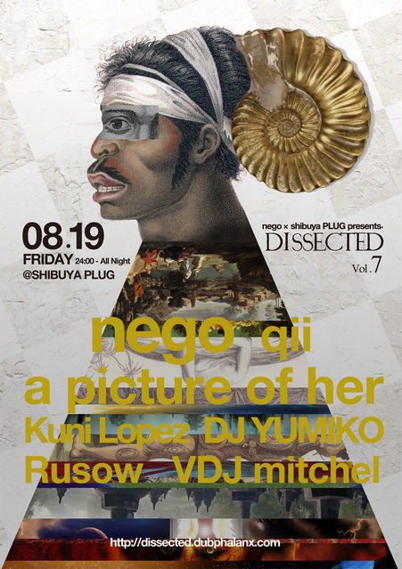 DISSECTED7回目は「a picture of her」「qii」とポストロックな2バンドを誘ってのミッドナイトパーティです。普段と違ってシュッとした感じになりそうだけど、きっとそれはそれで素敵な空間が仕上がるでしょう♪ レギュラー陣のYUMIKO、Kuni Lopez、Rusowによるライブペイン