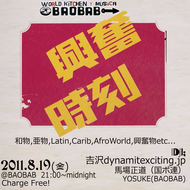 Day&Time : 2011 Aug 19th (Fri) 8:30pm〜11:00pm