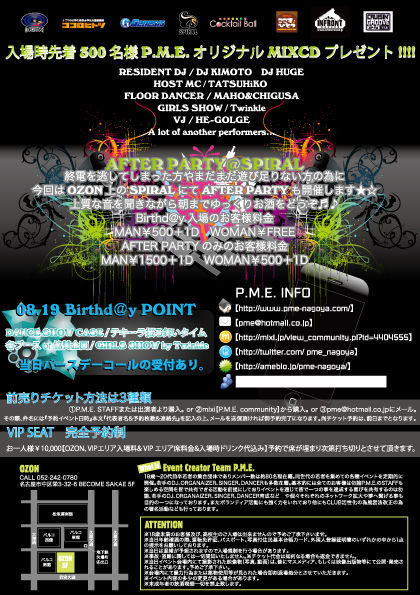 8/19はOZONで毎月恒例のBIG PARTY開催