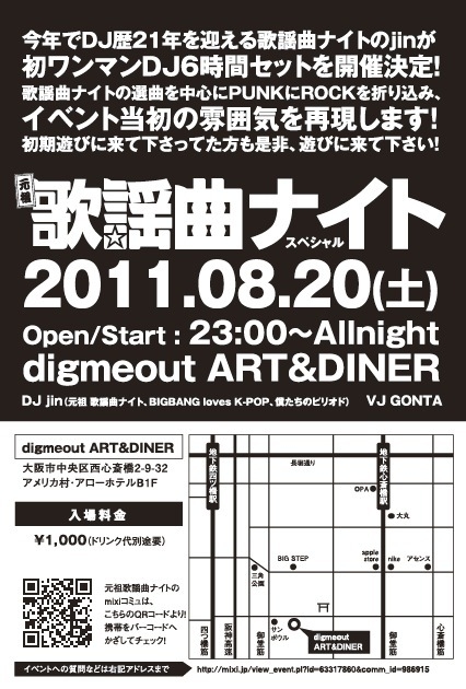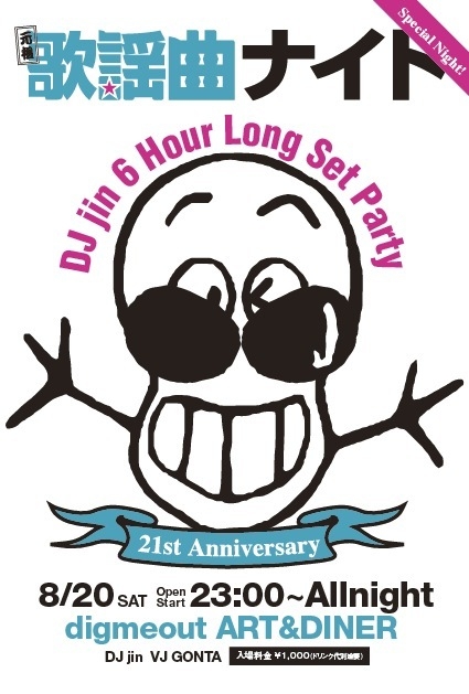 今年でDJ歴21年を迎える歌謡曲ナイトのjinが自身初のワンマンDJ6時間セット開催決定!