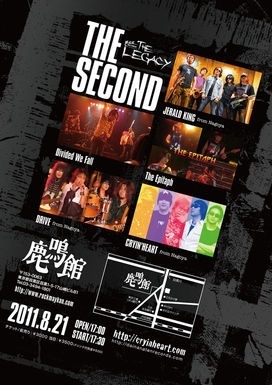 はじめまして。 告知失礼いたします。 私ども第七天RECORDS主催のイベント『THE LEGACY』をお知らせさせていただきます。 真夏の東京で行われる今回のイベントは、日本のROCKシーンで一世を風靡したアーティストが所属するバンドが出演します。 名古屋から3バンド、東京から2バンドの出演となります。 会場は、目黒鹿鳴館! 是非、ご来場下さい。 -------------------------------------------------- 第七天RECORDS presents THE LEGACY the second 【日程】2011年8月21日(日) 【時間】OPEN 17:00 / START 17: