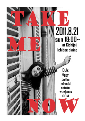 Âè2²óÌܳ«ºÅ¤Ç¤¹¡ª º£²ó¤â¤ª¤¤¤·¤¤¥Õ¡¼¥É¤â¤¢¤ê¤Ç¤¹¡ù ³§¤µ¤Þ¤Î¤´Íè¾ì¤òÀ§Èó¤ªÂÔ¤Á¤·¤Æ¤ª¤ê¤Þ¤¹¡ª ¡ÚTake Me Now vol.2¡Û -from 60s & Northern Soul to all kind of indie music- 8/21(sun)¡÷°ËÀéʼ±Òdining¡Êhttp://www.ichibee.com/¡Ë 18¡§00¡ÁÆþ¾ì̵ÎÁ¡ª DJ: Figgy¡¢Johhe¡¢mineaki¡¢SATOKO¡¢wizzjones¡¢COM (about us) 60s¡¢Mod¤äNorthern Soul¤ò¥Ù¡¼¥¹¤Ë ¿·µì¤òÌä¤ï¤Ê¤¤Music¤È ÈþÌ£¤·¤¤¤ª¼ò¡¢¿©»ö¤ò³Ú¤·¤á¤ë ¥¢¥Ã¥È¥Û¡¼¥à¤Ê¥Ñ¡¼¥Æ¥£¡¼¤Ç¤¹¡ª more info...¡¡BLOG¡¡http://blog.livedoor.jp/takemenow/ mixi ¥³¥ß