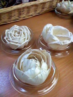 ラウレア特製ハーブティ−と、手作りフロランタンを戴きながら、デコスイ−ツ石鹸or香るアロマフラワーケーキを作ります 石鹸は天然素材を使いますので害になるものが入っていませんので、もちろんお風呂などでも安心してお使いいただけます。 アロマフラワーケーキは、飾っていただいたあと、キッチン用スポンジなどにもなりますので、とてもエコです。 また、JAA認定、アロマインストラクタ−指導のもと、香りのお話などしながら、お好きな精油をブレンドし、香りのスプレーボトルを作ってお持ち帰りいただけます。 お部屋