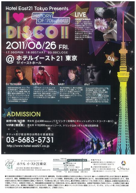 ホテルイースト21東京では、2011年8月26日(金)ディスコイベント「I LOVE DISCO! History of'70s〜now」を開催!!