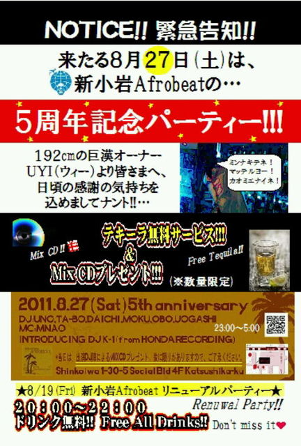 東京/渋谷大阪/堀江のマンスリーROCKDJパーティー