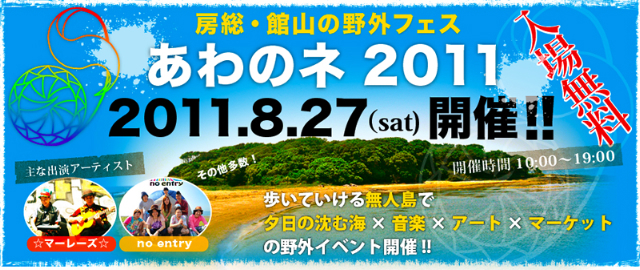 さぁ〜梅雨も開けてあわのネまでもう少し!! 助けてほしい事がございますよ!! ボランティアが全然たらない〜!! なのでボランティア募集いたします!! 毎度そうなのですが、ボランティアはめっちゃ楽しいです!! 0から作り上げるところが見れるからです!! 同じ感動を共にできる人を募集しております!! 転送歓迎!! ↓ ★☆★☆★☆★☆★☆★☆★☆★☆★☆★☆★☆★☆『歩いていける無人島フェス〜あわのネ2011〜』 今年もやります!千葉県館山市で開催される真夏の音楽フェス!あわのネ2011