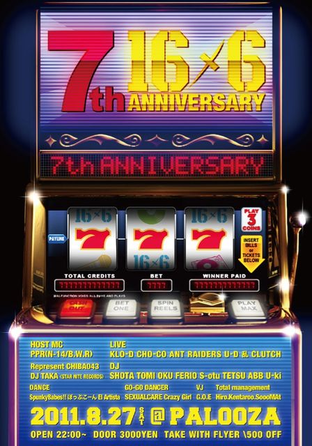 こんにちは!!! 16×6スタッフのSoooMAです!! やっと今回8月27日の16×6の詳細がでました 今回の16×6は7th Anniversary!!! 7年前にタイムスリップ〜...って事で、今回は16×6の出演者、当時を思い出し 男性陣の服装はオーバーサイズ!!!!ダボダボ〜!!! 女性陣はBガール!!! ほんでもって、流れる曲は2010、2011の新譜一切無し 改めてHIP HOPの素晴らしさを確認&時代の流れを感じさせる。 そして、そして来て下さる皆様も、オーバーサイズ&Bガールで