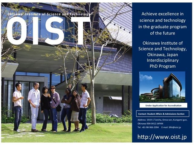沖縄科学技術大学院大学(Okinawa Institute of Science and Technology=OIST) は2012年9月開学に向け、設置認可申請中です。博士課程進学希望者のために、進学相談、見学、大学説明会の予約を受付中です。