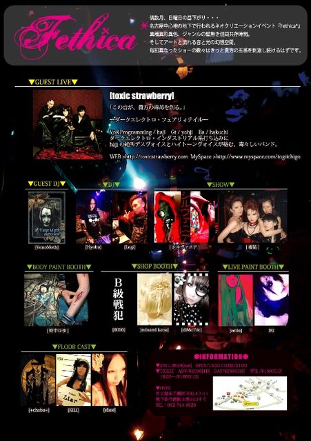 ※今回会場を今池Hypeに変えての会場キャパ・時間拡大での開催となります※ ※会場は桜通り線 今池駅3番出口真正面となります※ 夏の終わりに是非遊びにご来場ください^^ ■□■□■□■□■ 名古屋『 Fethica* 』 ■□■□■□■□■ ■□Web Site■□ http://fethica.jimdo.com/ ■□mixiコミュ■□ http://mixi.jp/view_community.pl?id=4803186 『名古屋