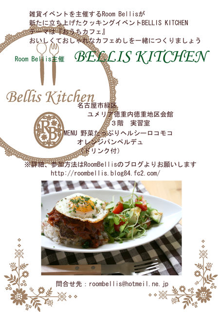 はじめまして 名古屋市を中心として活動する 雑貨イベント運営団体Room Bellis(ルームベリス)が 新たにクッキングイベントを行います テーマはおうちカフェ フード担当スタッフが中心となりカフェめしを みんなで楽しく作って食べましょう♪という企画です 子連れのママもOKです なかなかゆっくりお外でカフェタイムがつくれないママさんたち 自分でおうちカフェを作っていくのも楽しいですよ〜 ※託児はありません また私自身、転勤妻なので、新転地でのお友達づくりって難しい。。。 というのを身に染みていま