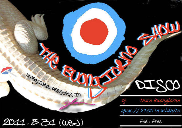 DiscoBuonGiorno presents =THE BUON GIORNO SHOW= 夏の終わり。 清く正しくボンジョルノ。 自前フライヤも一歩も引かず。 お待ちしております。 ******* =THE BUON GIORNO SHOW= 8.31(wed) OPEN/START: 21:00 to 27:00 FEE: FREE DJ:DiscoBuonGiorno @glam. 富士市浅間本町1−30 0545+53+4288