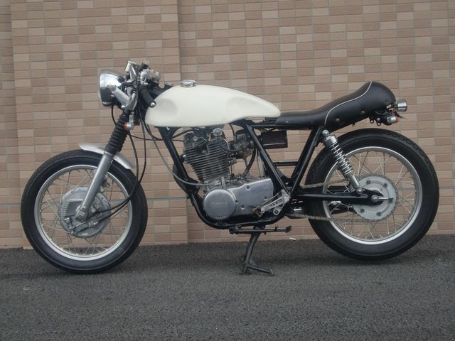 ・メーカー名: YAMAHA ・車名: SR400 ・年式: 後ほど調べて記入します。 ・車体番号: 同上 ・2st/4st: 4st ・排気量: 400cc ・色:白(クリーム色っぽいです) ・自走: 可能 ・走行距離: 後ほど調べて記入します。 ・車検/自賠責の有無: 有り(平成24年12月まで) ・事故歴: 無し(複数オーナーの為解りませんが、私は転倒は無いです) ・キズや不具合の有無:特に走行に支障があるような不具合はありません。傷は年式の割には少なく綺麗だと思います。 ・カスタム箇所や装備: 全て挙げるとキリがありませんので、主